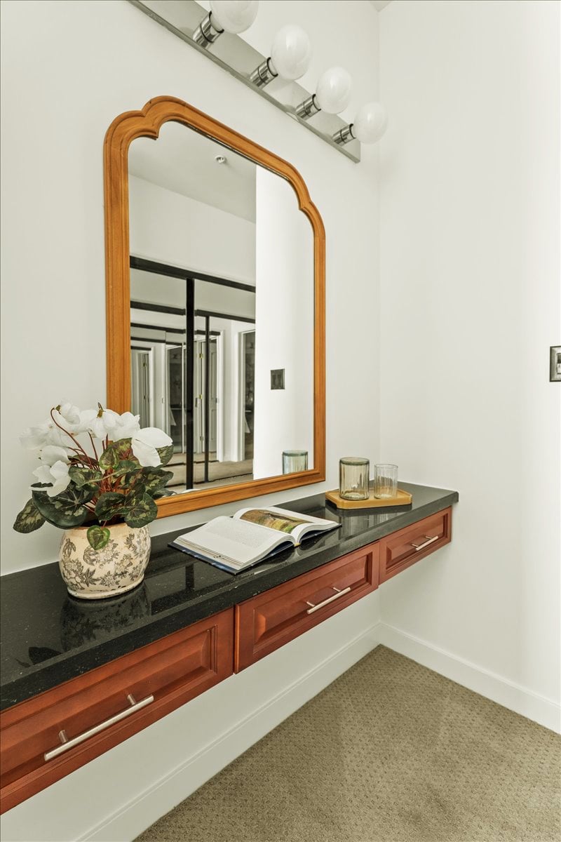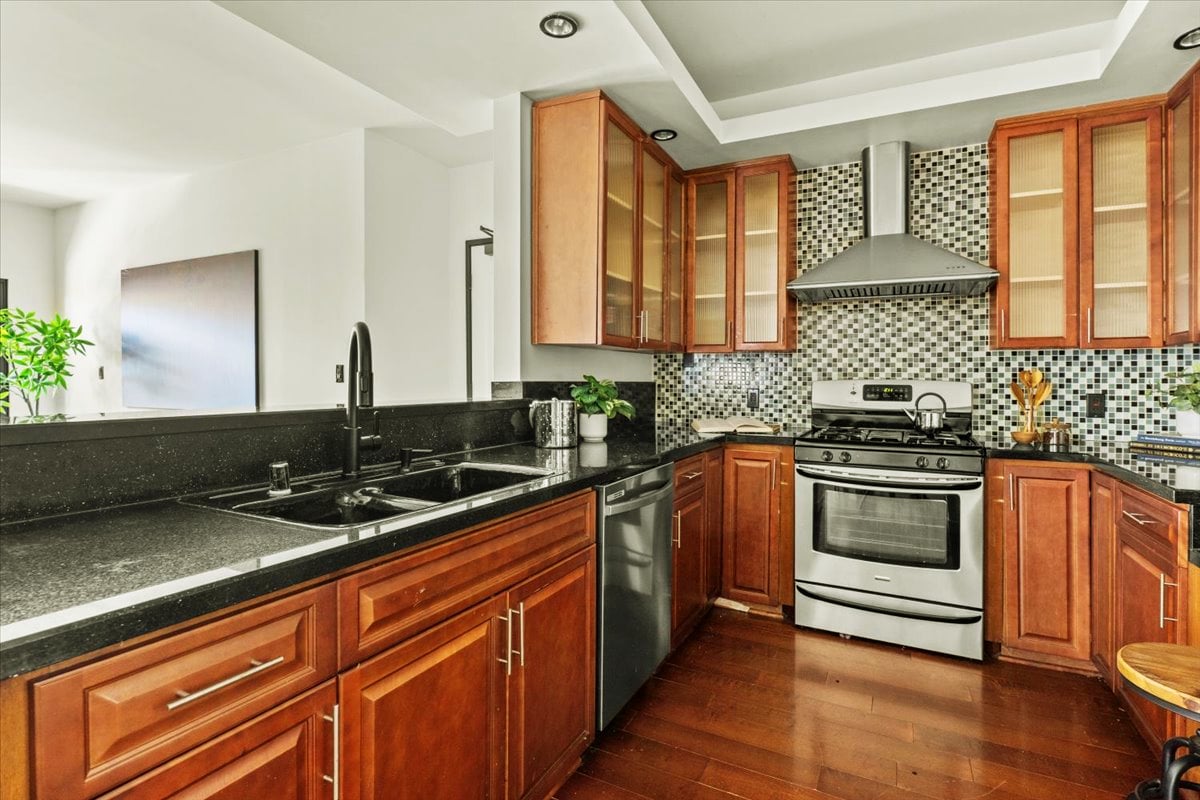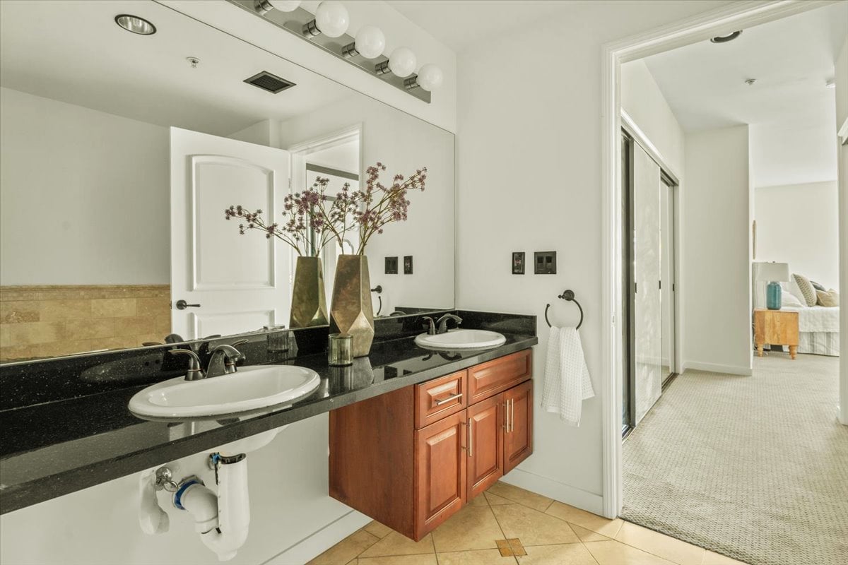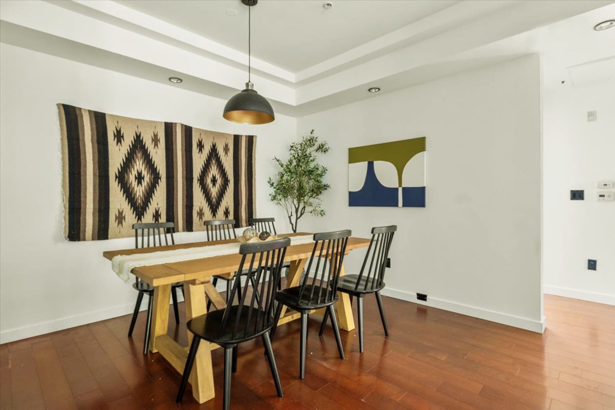 Other upgrades include: Renovated luxury kitchen with granite countertops and custom glass-inlay upper cabinets + stainless steel appliances + hardwood floors + in-unit laundry room + recessed lighting + high ceilings. The home’s layout allows for great natural light in each room. The primary bedroom suite is extra large with luxury dual-vanity bathroom and spa tub. Professionally organized closets in every bedroom. Building was built new in 2007, so there is Central AC and Heat, newer systems, and this unit features 2 DIRECT ACCESS PARKING SPOTS in underground secure parking.