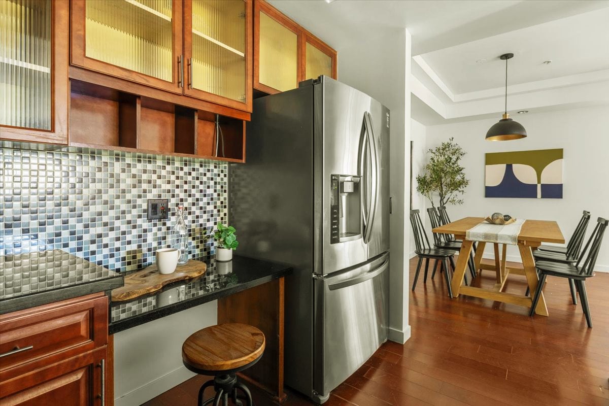 This newer construction building is in a quiet community-complex of only 16 units. A true gem: COVETED LOCATION IN BACK-OF-BUILDING, CORNER UNIT WITH ONLY 1 COMMON WALL. PRIVATE BALCONY WITH NATURE TREE TOP FEEL. Excellent 3BR + 2BA floor plan, with open concept kitchen.
